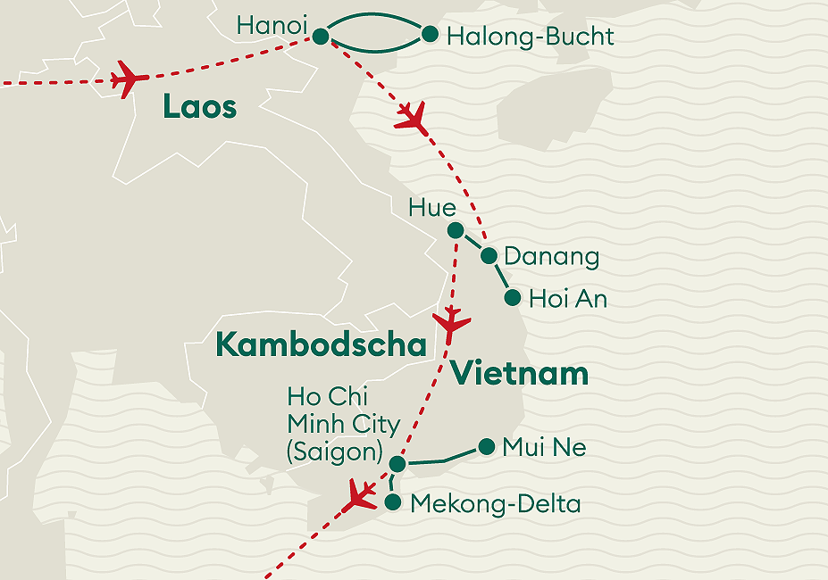 Optionale Verlängerung oder Rückflug Bei Buchung ohne optionale Verlängerung erfolgt der Transfer zum Flughafen Ho Chi Minh City. Rückflug via Dubai nach Zürich, mit Ankunft am nächsten Tag in Zürich.