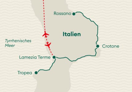 Doch Kalabrien hat mehr zu bieten als nur Küstenzauber. Fahren Sie ins Landesinnere, wo das Aspromonte-Gebirge mit grünen Tälern, steilen Schluchten und ursprünglichen Dörfern auf Sie wartet. Die ruhige, fast zeitlose Atmosphäre der Region lädt dazu ein, tief in das authentische Italien einzutauchen und die herzliche Gastfreundschaft der Einheimischen zu erleben.